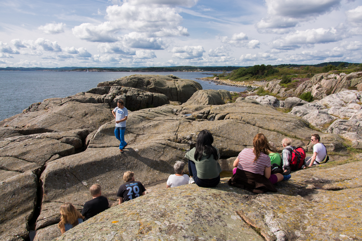 Tilbake ved museet er turen ferdig, og rett ved inngangen kan du ta deg en velfortjent pause og kjenne på det glattskurte svaet dekket av mange flotte skuringsstriper som kan se ut som om de ble laget for bare noen år siden.